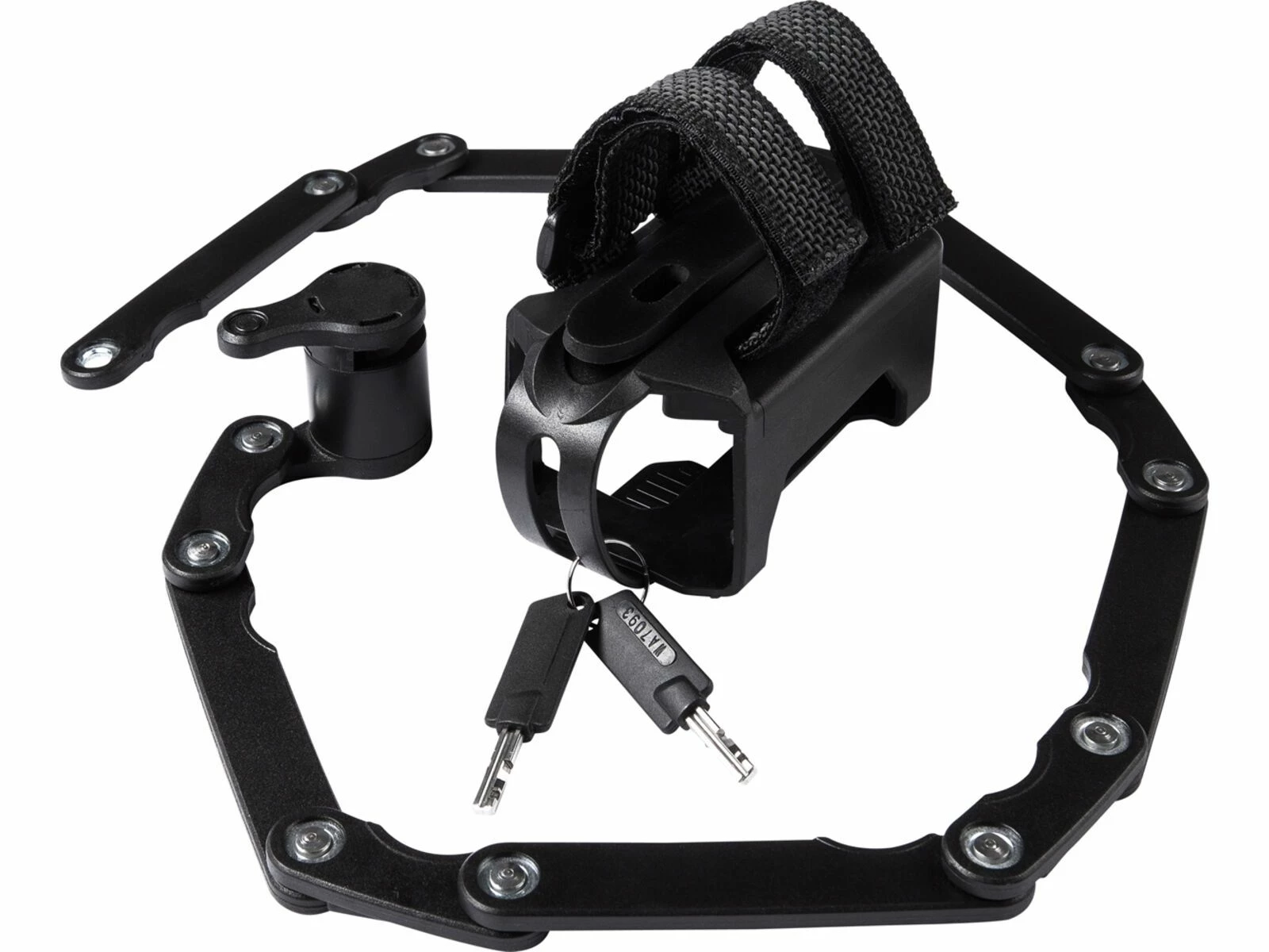 Das Cube RFR Faltschloss L ist ein hochsicheres, handliches Fahrradschloss, 900 mm lang, extra sicherer Schließzylinder, inkl. 2 Schlüssel und Halterung. Es ist dein Stolz und deine Freude, halte daran fest.Features