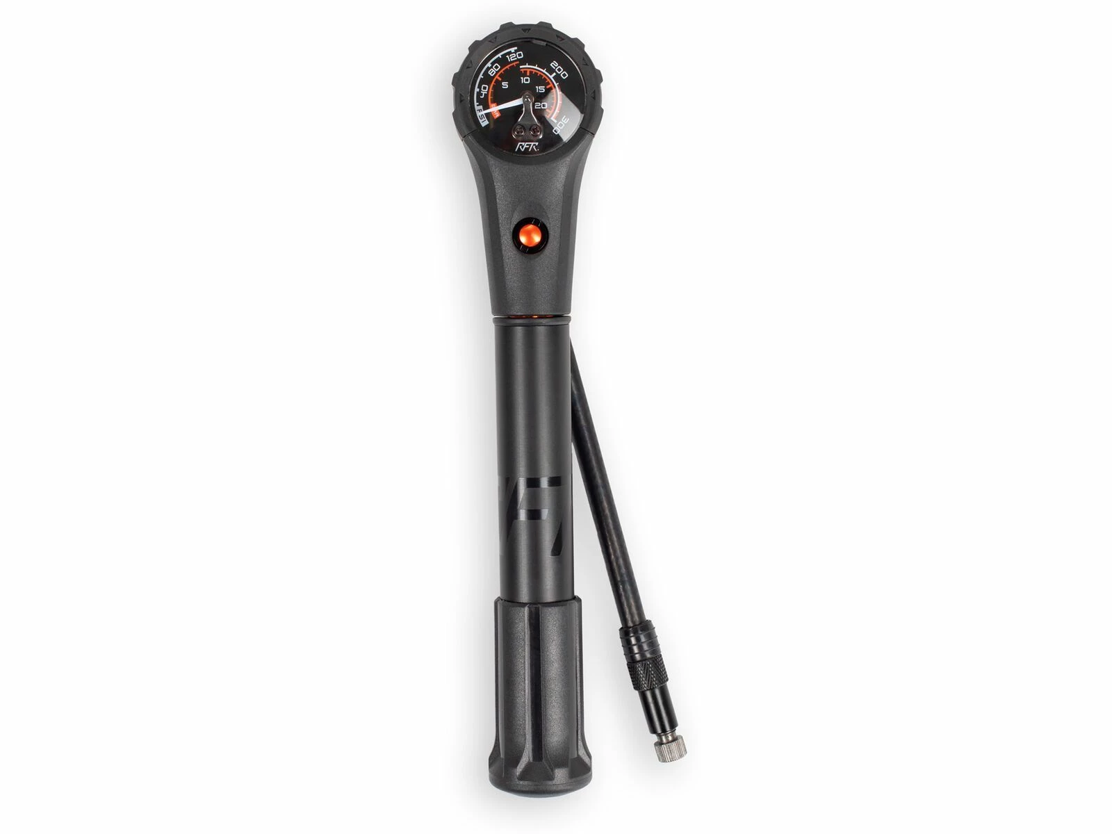 Unter Druck! Ideal für Fully und MTB, mit der Shock&Tire von RFR hat man immer sein komplettes Set-up für unterwegs dabei. Mit ihrem patentierten Schrader-Ventilkopf mit Presta-Adapter und einem langen Flexschlauch gewährleistet die Dämpferpumpe maximale Flexibilität. Ebenso kannst du je nach Einsatzzweck zwischen hohem Druck und viel Volumen entscheiden. Für mehr Kontrolle über die Luft in deinem Reifen achtest du immer auf das Manometer und justierst entsprechend mit dem Luftablassknopf.Features