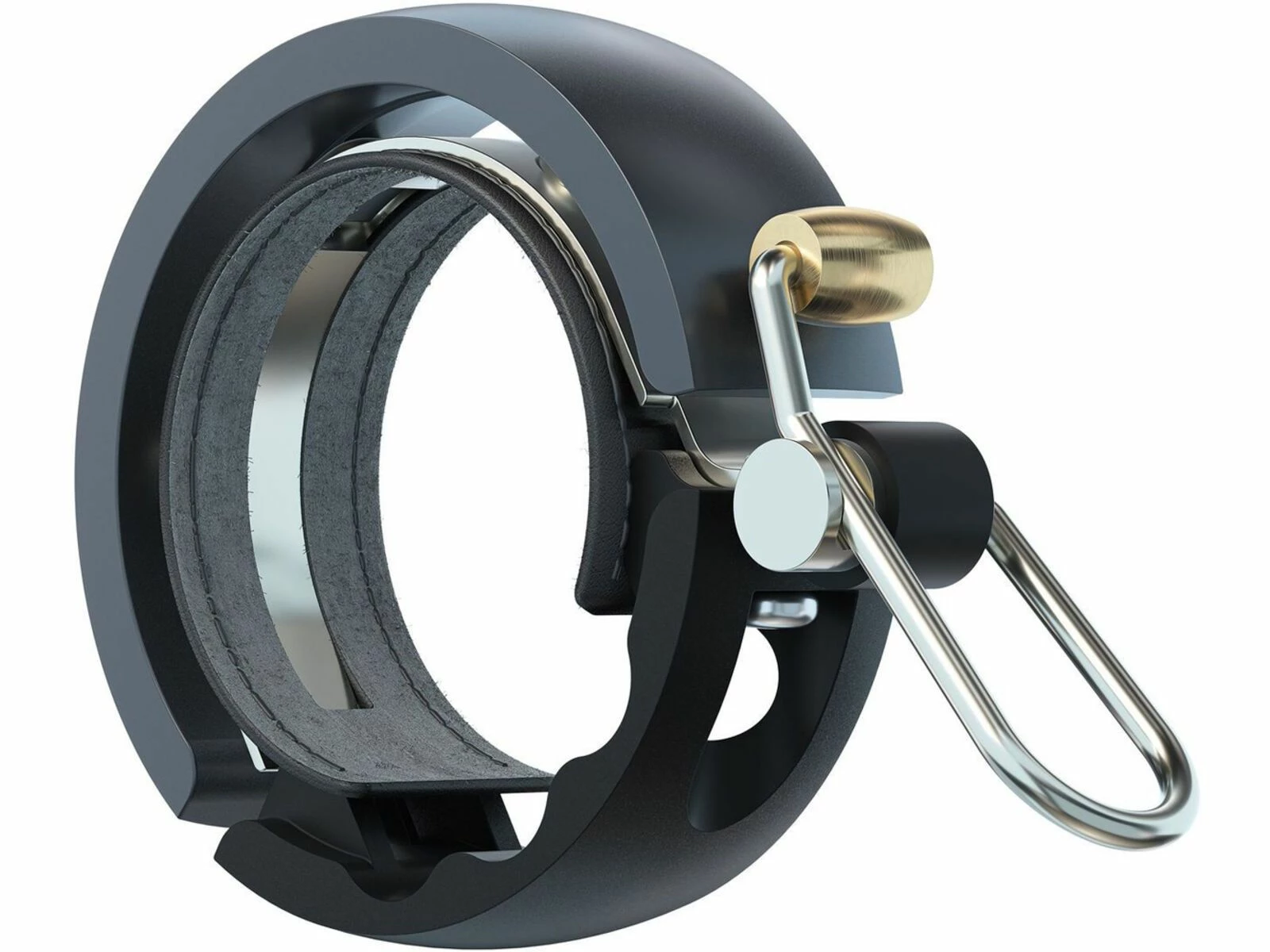 Die Knog Oi Luxe verfügt über einen CNC-gefrästen Aluminium Ring, einen Klöppel aus Messing, einen genähten veganen “Kunstleder” Shim und eine Klemmschelle aus Edelstahl. Sie ist für eine lange Lebensdauer ausgelegt und ein Vergnügen, sie am Lenker zu haben.