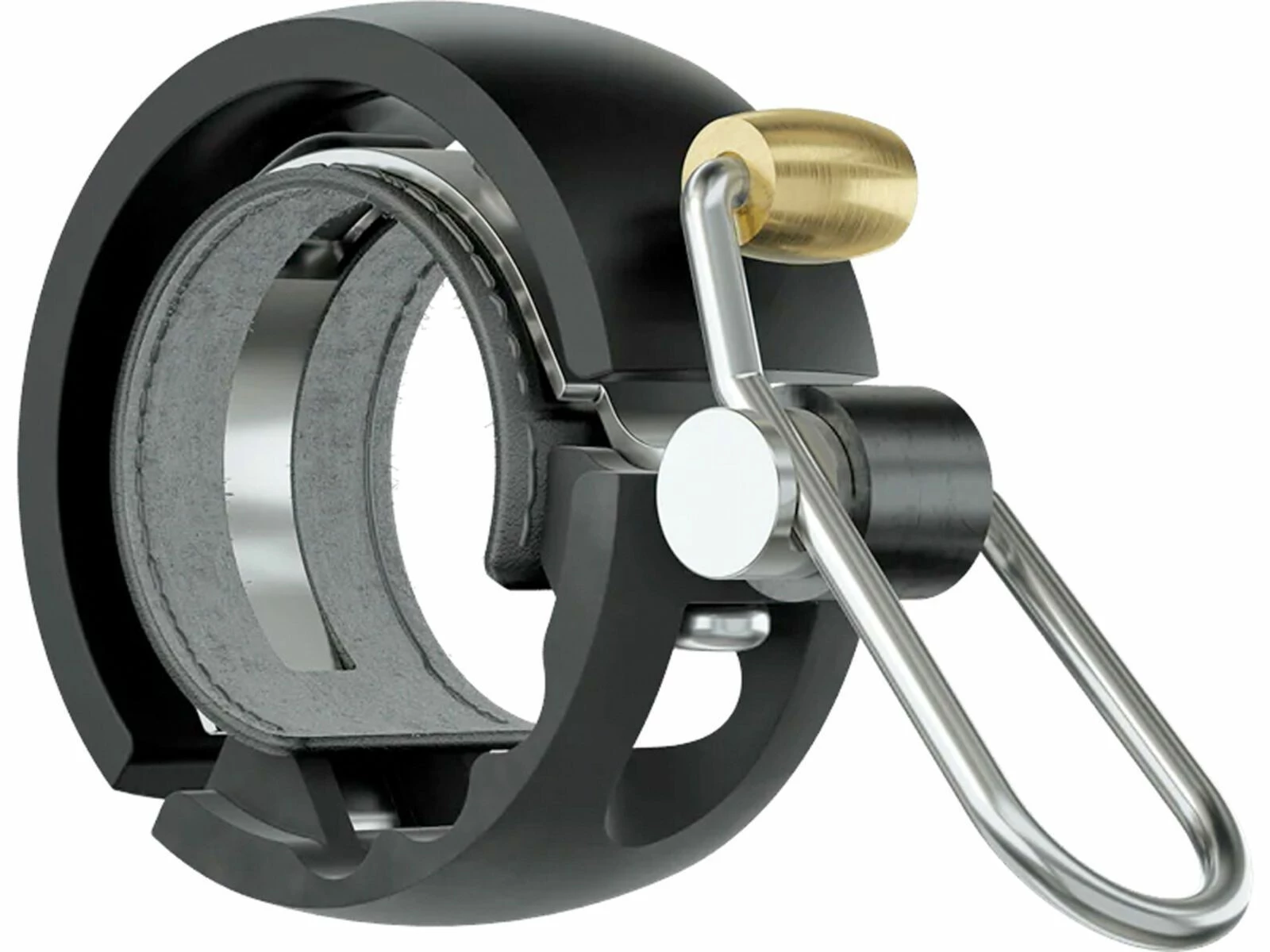 Die Knog Oi Luxe verfügt über einen CNC-gefrästen Aluminium Ring, einen Klöppel aus Messing, einen genähten veganen “Kunstleder” Shim und eine Klemmschelle aus Edelstahl. Sie ist für eine lange Lebensdauer ausgelegt und ein Vergnügen, sie am Lenker zu haben.