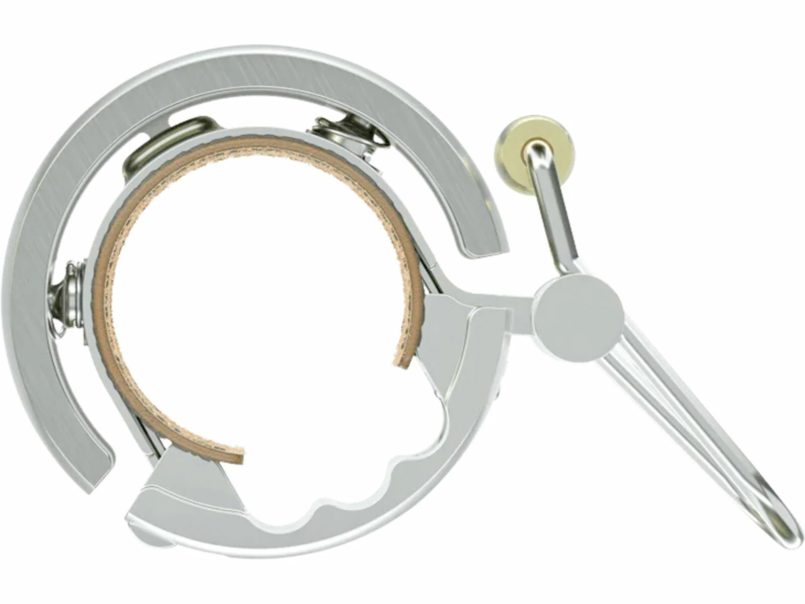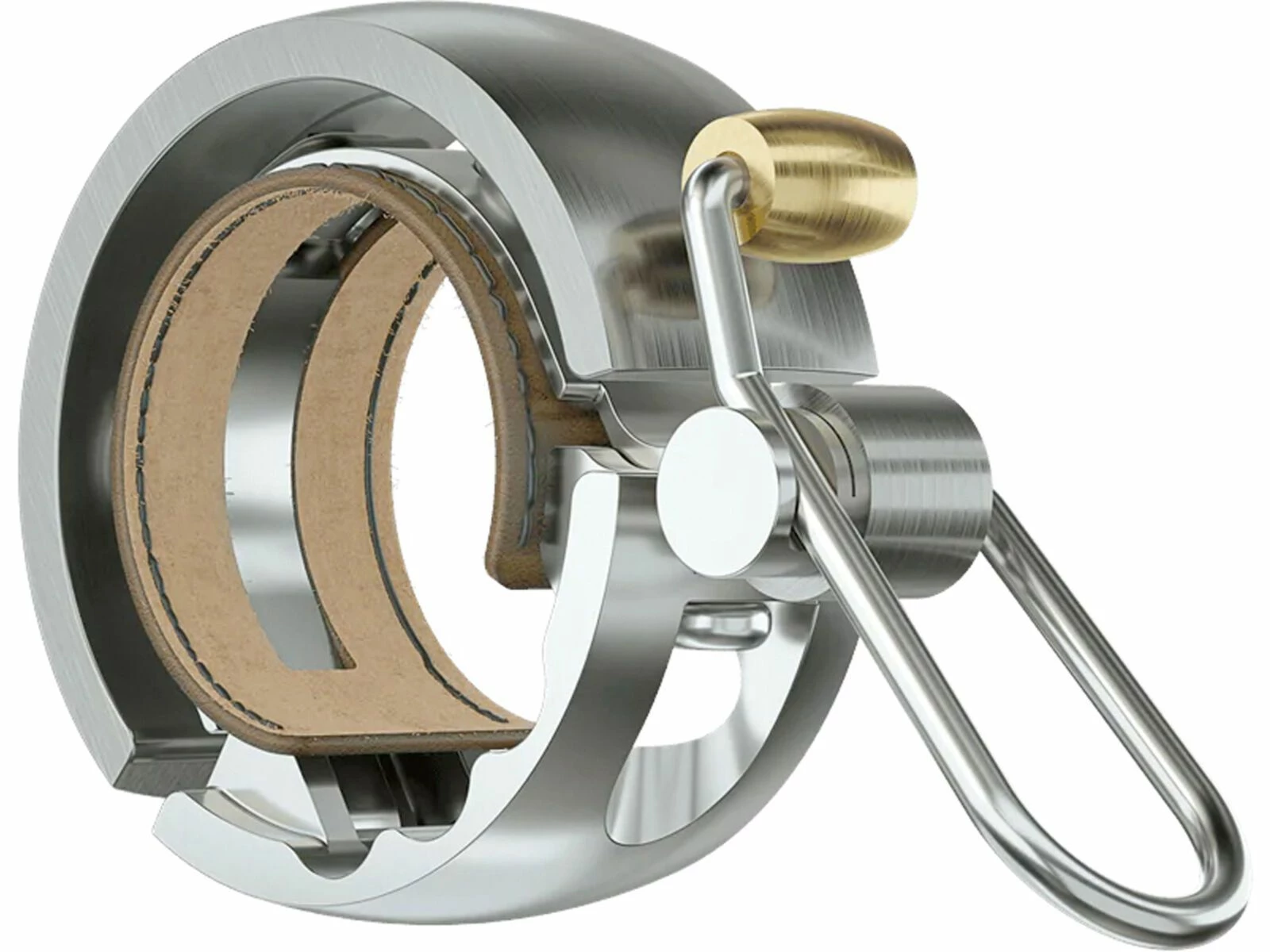 Die Knog Oi Luxe verfügt über einen CNC-gefrästen Aluminium Ring, einen Klöppel aus Messing, einen genähten veganen “Kunstleder” Shim und eine Klemmschelle aus Edelstahl. Sie ist für eine lange Lebensdauer ausgelegt und ein Vergnügen, sie am Lenker zu haben.