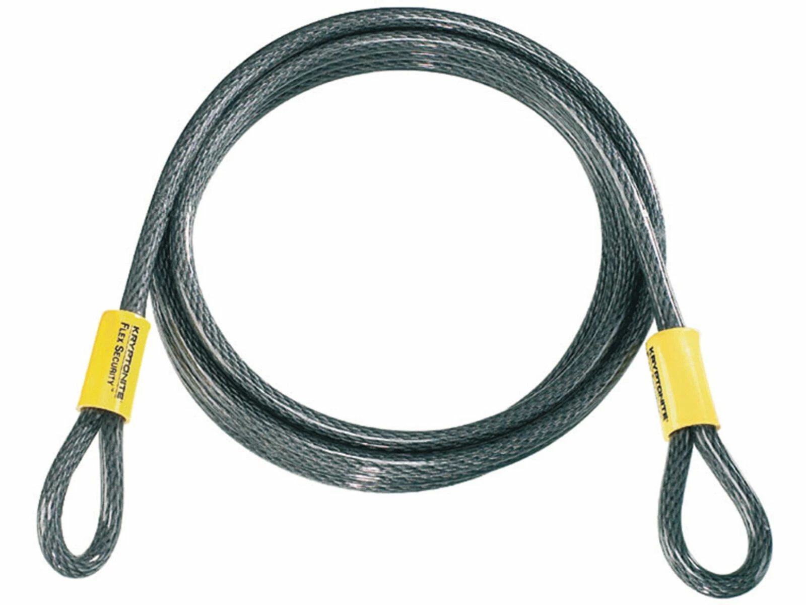 Sehr flexibles, kunststoffummanteltes Stahlkabel mit 2 Endschlaufen. In Verbindung mit einem Bügelschloss dient das Kabel als ideale Zusatzsicherung für Helme, Sattelstützen, Vorderräder, Kinderanhänger etc.Features