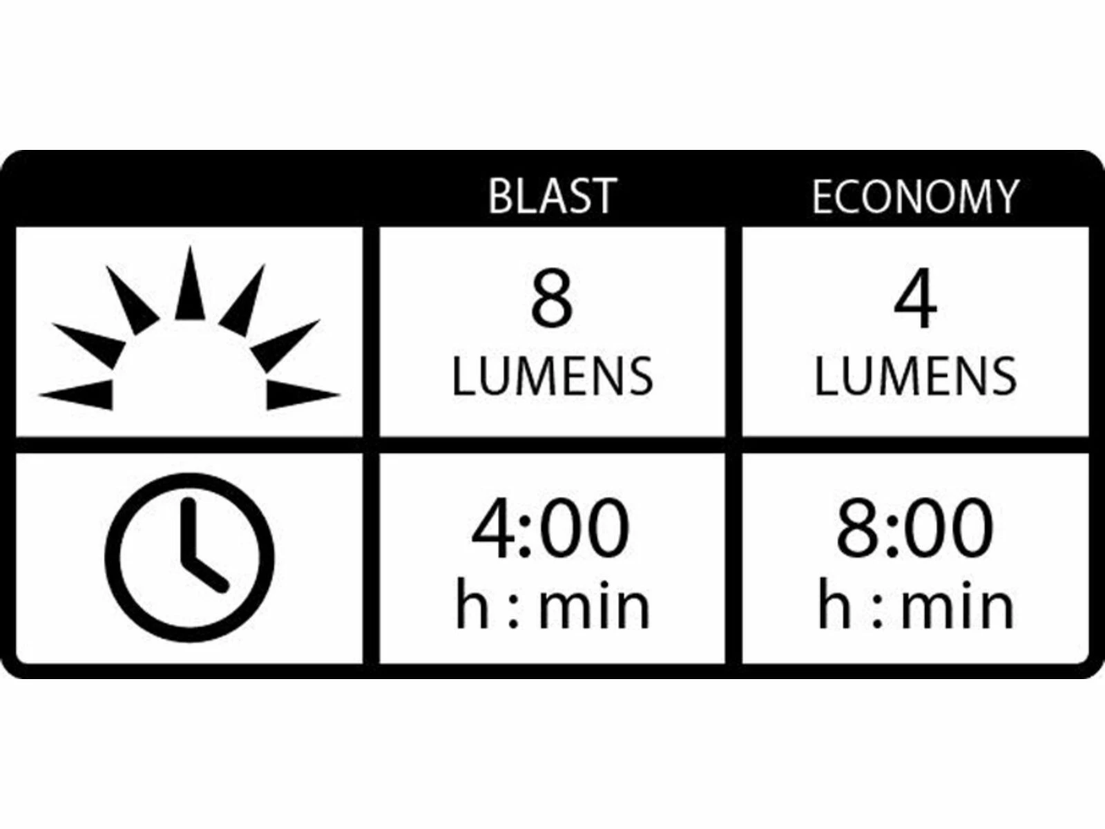 - 4 / 8 h Leuchtdauer (Blast / Economy)