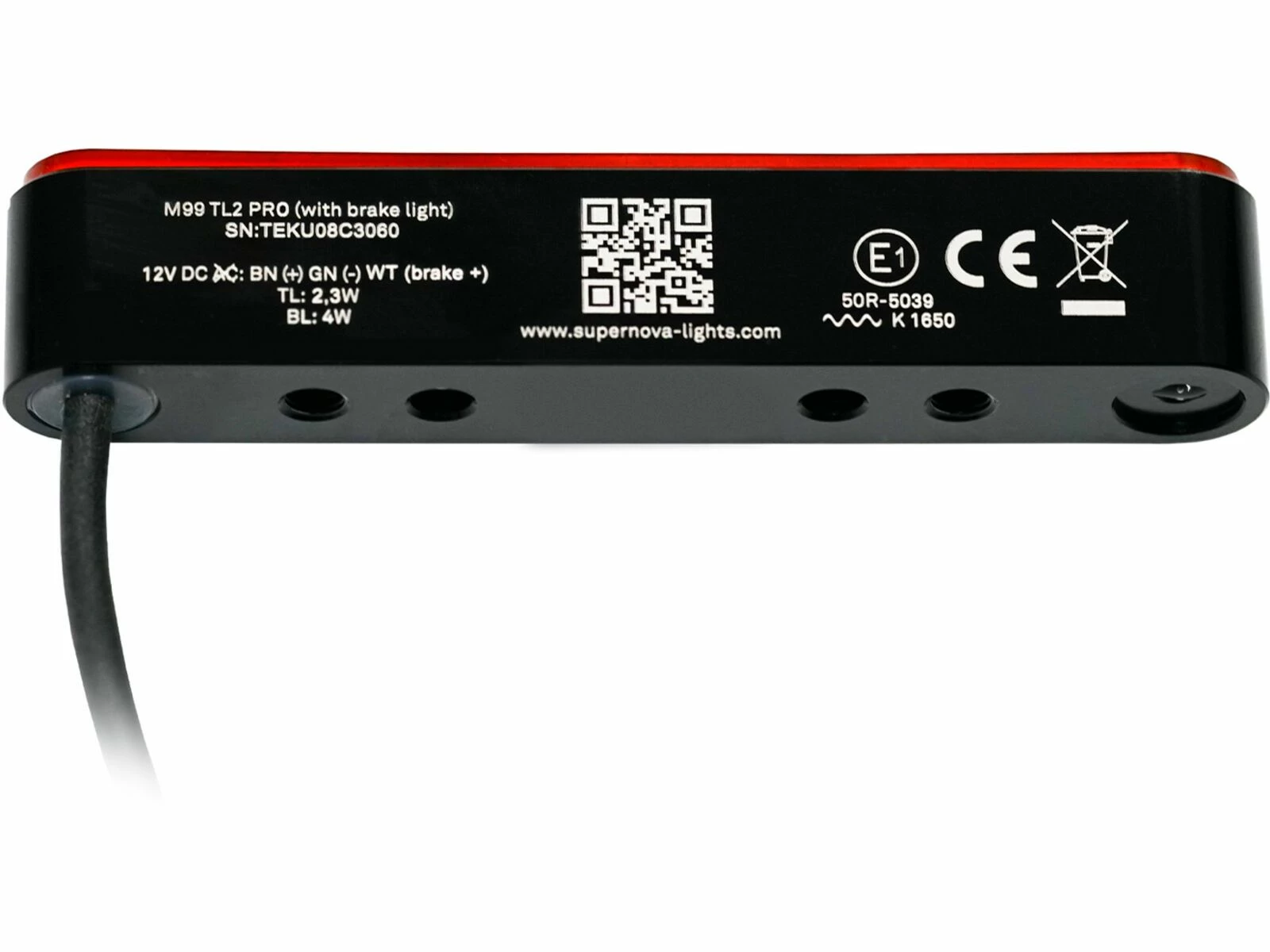 - Stromversorgung / Leistung: 12 V. 2,3 W Rücklicht, 4 W Bremslichtmodus