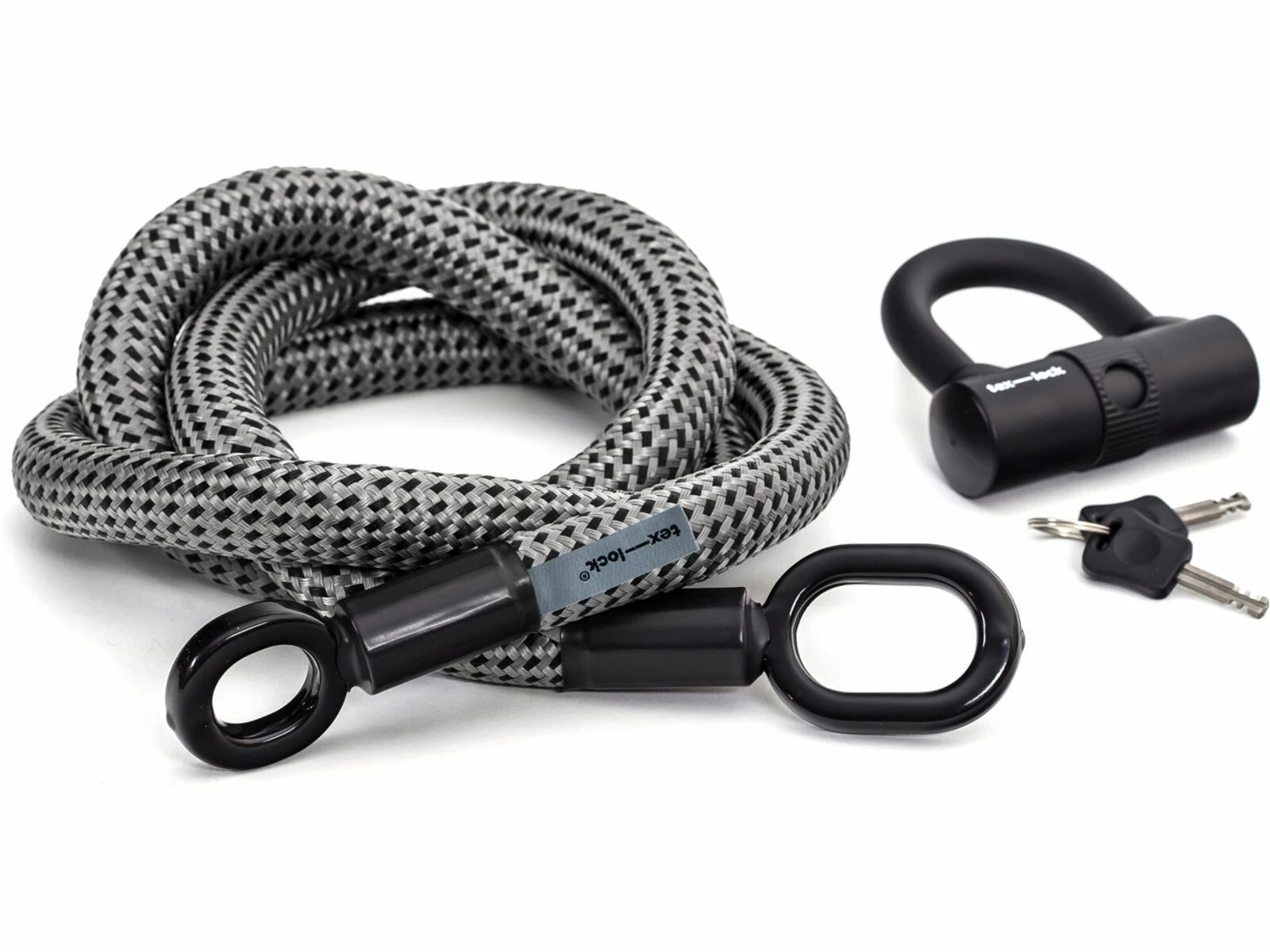 - Flexibel: Da das Tex-Lock Eyelet aus Fasern und einem Metallkern besteht, ist es genau so flexibel wie ein Seil. Da es jedoch aus mehreren speziellen Schichten besteht, ist es so sicher wie herkömmliche Fahrradschlösser.