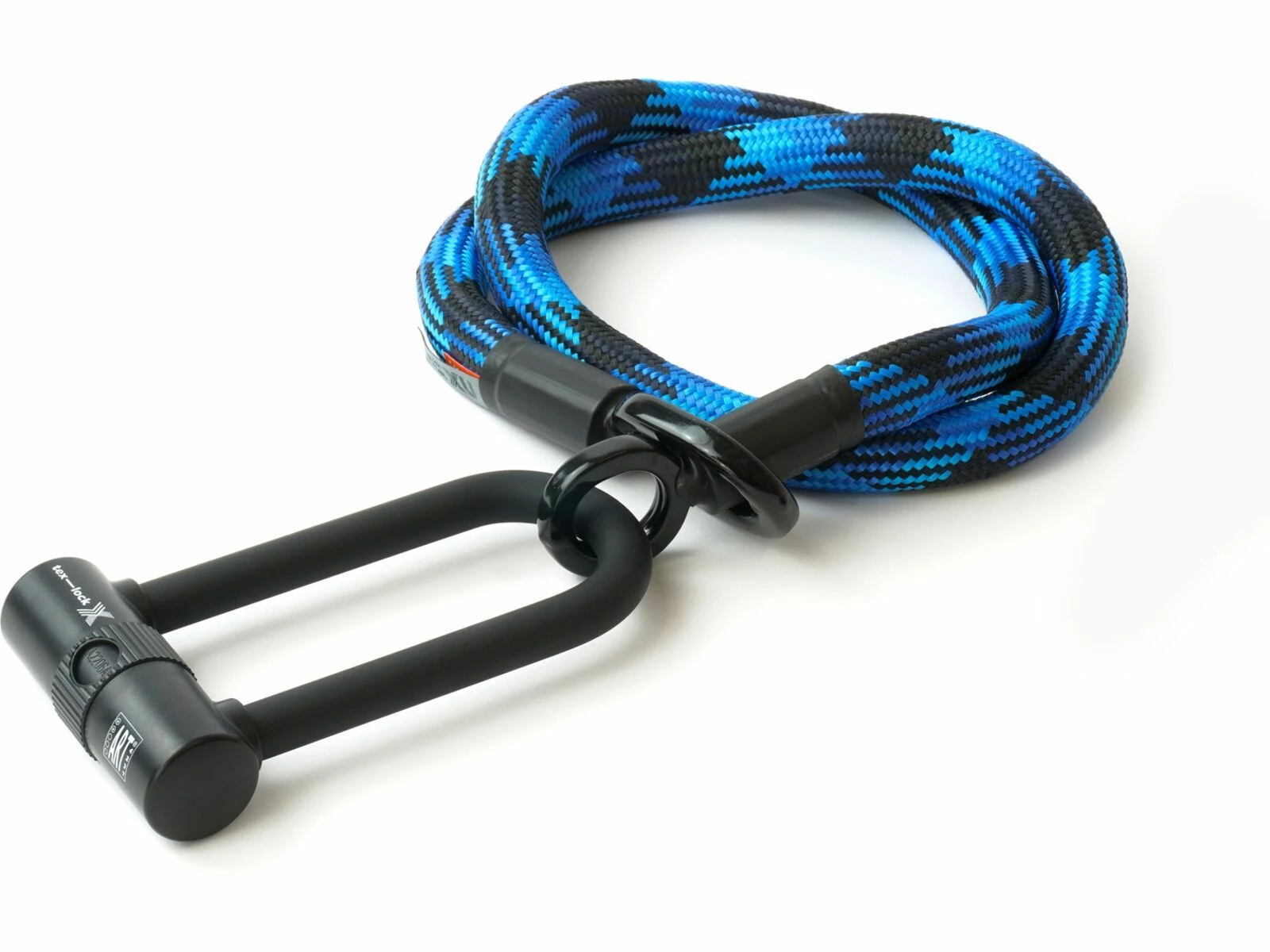 Schließe dein Fahrrad an jedem Ort sicher an – mit dem Tex-Lock Eyelet Fahrradschloss. Das Tex-Lock Eyelet ist ein Textilschloss mit Ösen und gehärtetem Metallkern. Es besteht aus verschiedenen Lagen Textilfasern in einem Verbund. Jede Lage erfüllt eine spezielle Funktion und schützt dein Bike vor Diebstahl und Angriffen mit Bolzenschneider, Feuer oder Säge. Die weiche Oberfläche des Tex-Lock bewahrt dein Fahrrad vor Kratzern und deine Ohren vor Klappern.