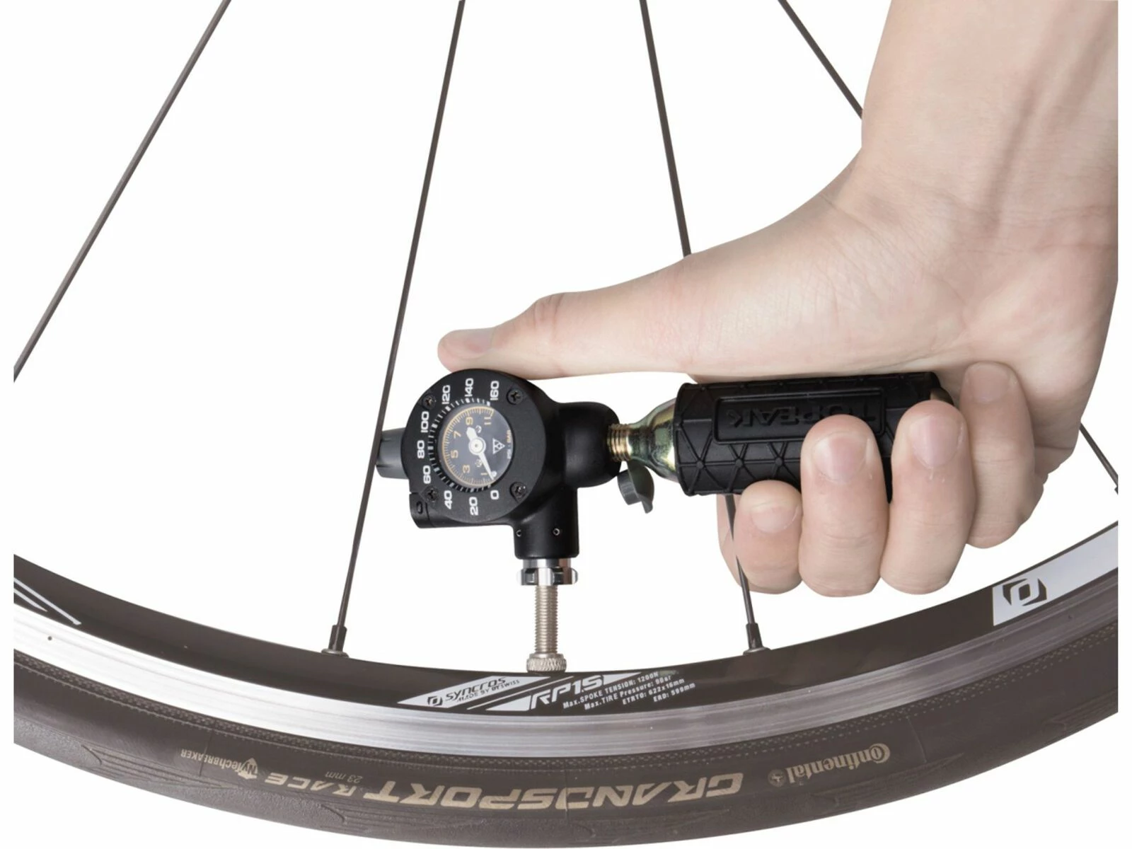 Der Topeak Airbooster G2 ist der weltweit erste CÖ-Inflator mit leicht ablesbarem Manometer für eine perfekte Feinregulierung des Luftdrucks. Der gewinkelte Kopf ist mit Presta- sowie Schrader-Ventilen kompatibel und bietet optimale Kontrolle beim Befüllen des Reifens. Zweiseitiges Design für bequemen Transport einer CÖ-Gewindekartusche (nicht im Lieferumfang enthalten).Features