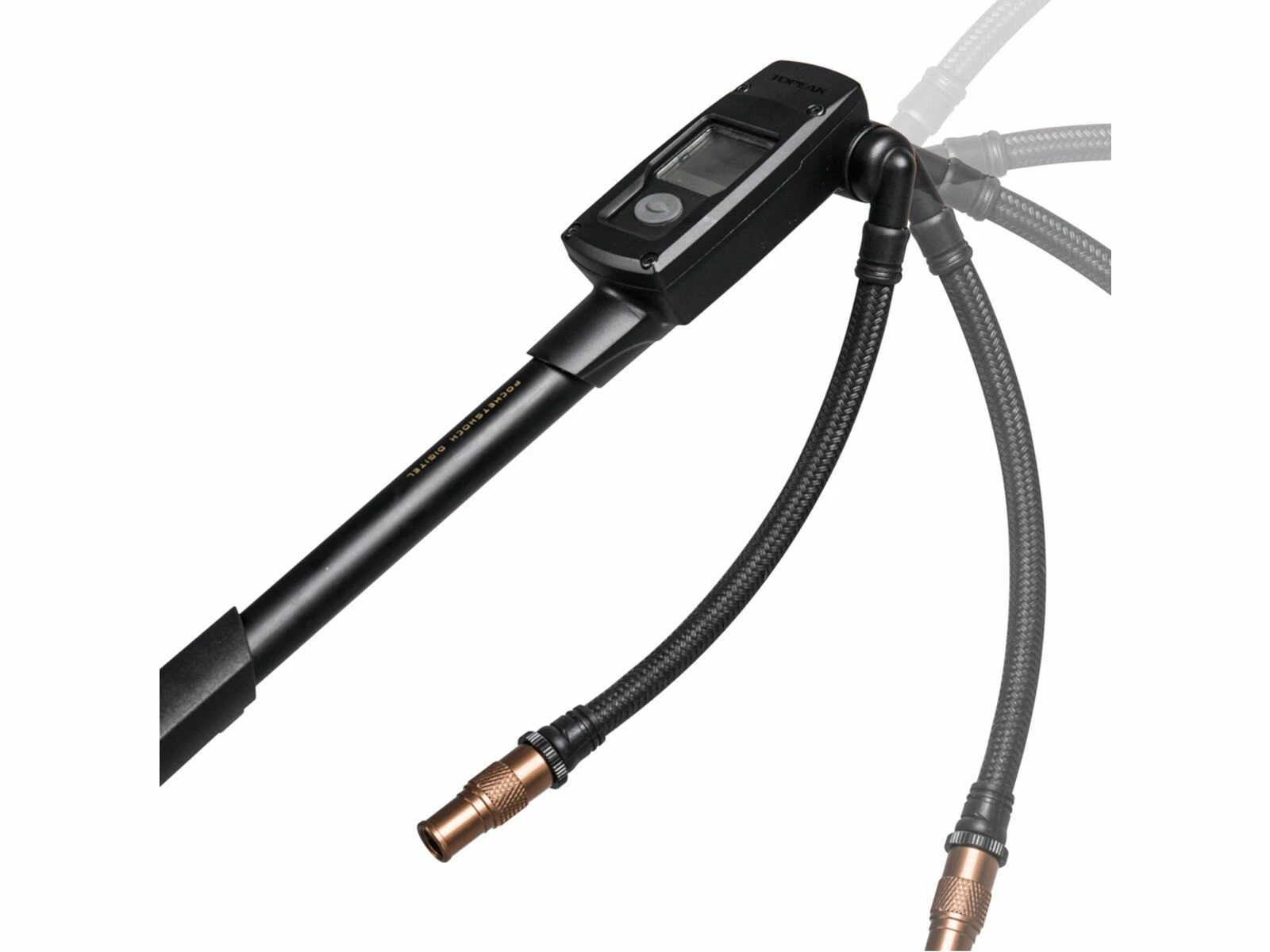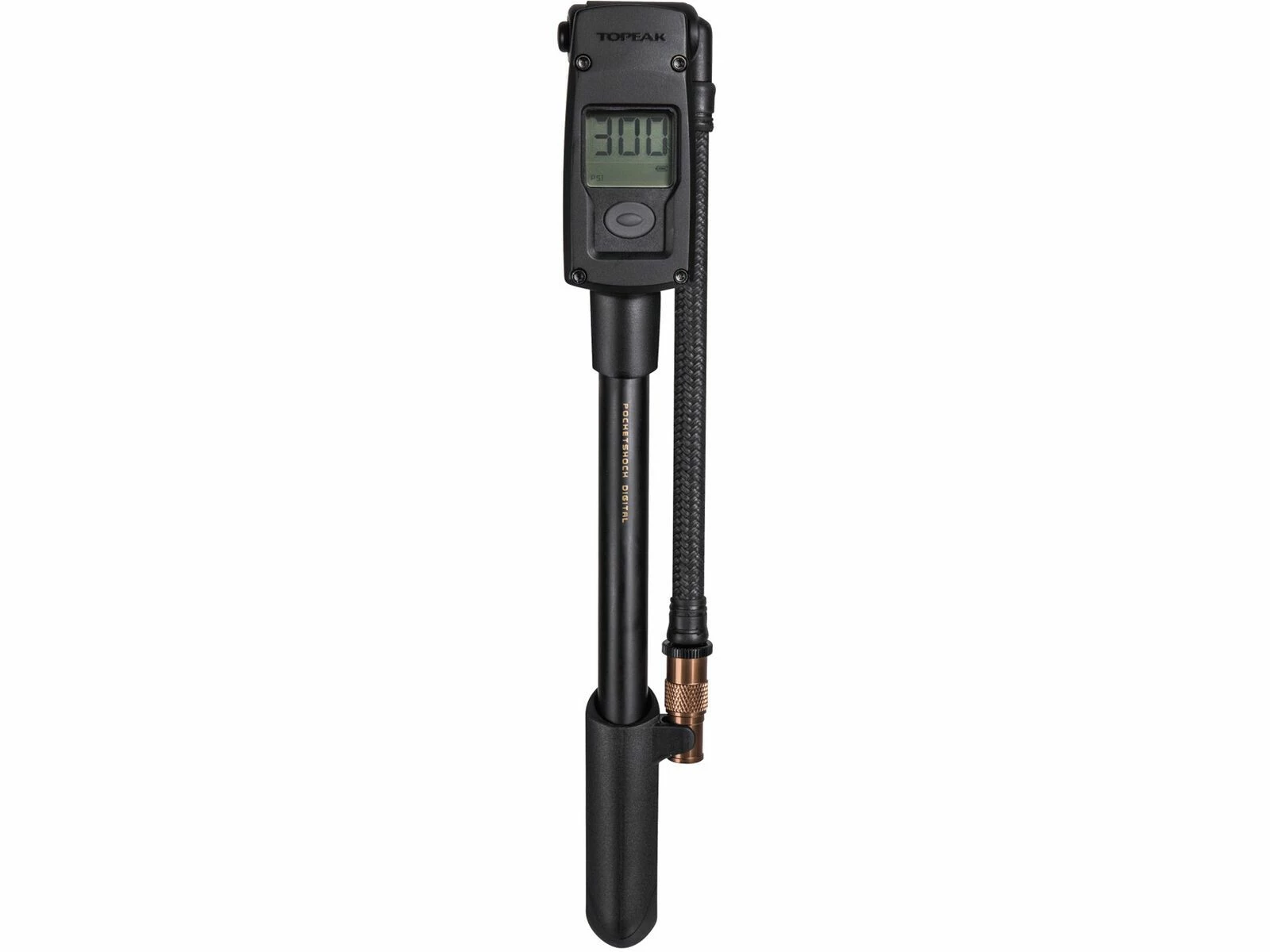 Die Topeak Pocket Shock Digital ist eine kompakte, digitale Dämpferpumpe mit einem leicht ablesbaren LCD-Display für Luftdrücke bis 20,7 bar / 300 psi. Der Luftablassknopf und der Pressure-Rite-Connector erleichtern das Einstellen des exakten Luftdrucks und verhindern effektiv, dass beim Abschrauben von Federelementen Luft entweichen kann. Der robuste, flexible und 360° drehbare Schlauch schont das Ventil während des Aufpumpens.